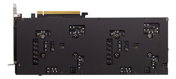 该卡禁受双槽狡计,尺寸为300 x 112 x 42 毫米,分量1.52公斤,配备了全尺寸的被迫散热器和金属背板。